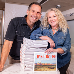 RVers since 2014 and authors of the bestselling books "Living the RV Life – Your Ultimate Guide to Life on the Road", and RV Hacks – 400+ Ways To Make Life On The Road Easier, Safer, and More Fun!". We've traveled to all 50 USA States, Canada, Mexico. Done 20+ RV factory tours. And toured close to 1,000 RVs. We're known for quality, in-depth and unbiased educational content. Our focus on safety, resourcefulness, and positive attitudes. Oh, and for living and loving the RV life, no matter what it throws us! It's all part of the adventure!